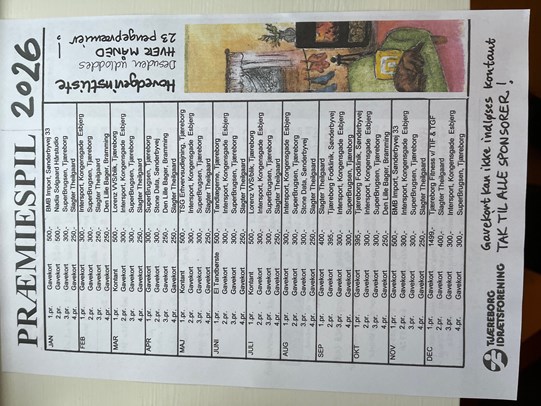 Præmiespil 2026 med 200,- kr. Frist for betaling er 2/2.