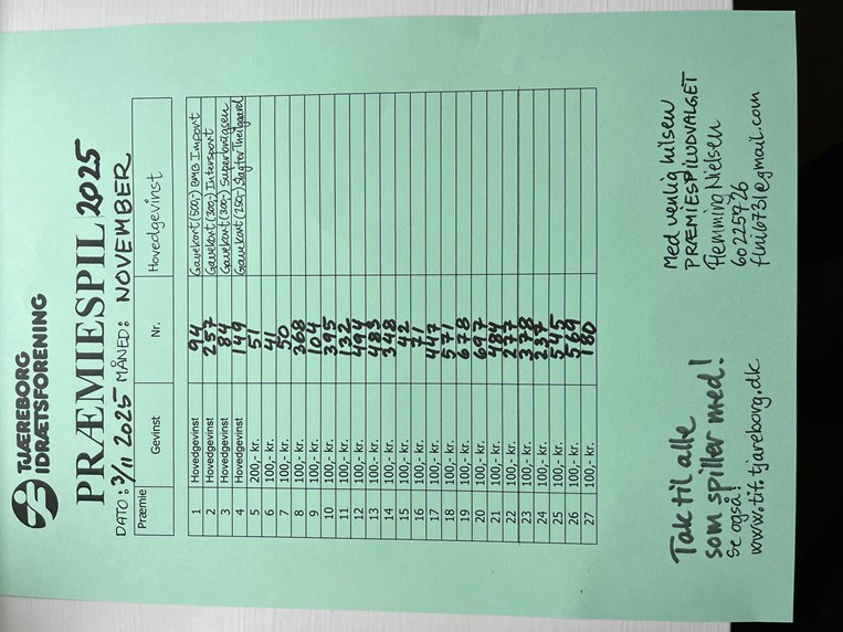 Dette er vinder numre i præmiespilet